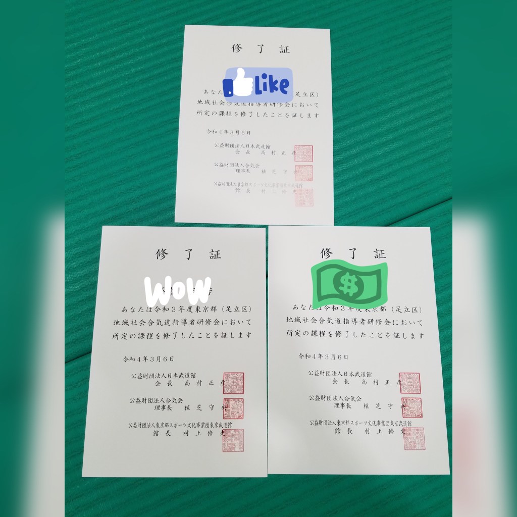 3/5-6に東京武道館で行われた合気会主催の地域社会合気道指導者研修会に、当道場から3名の指導者が参加しました。